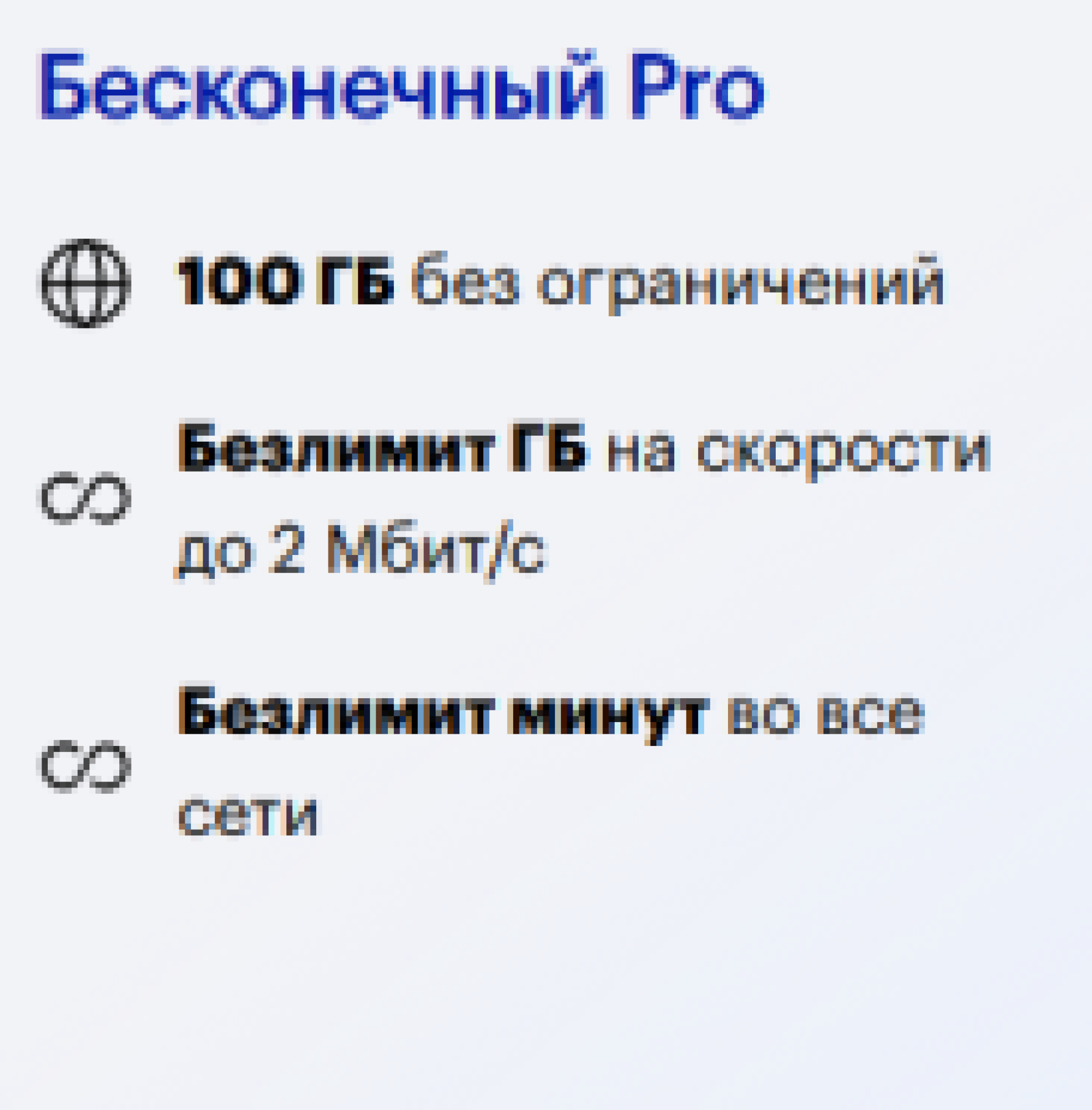 - 3,5 ГБ без ограничений, после которых безлимит на скорости до 2 Мбит/с